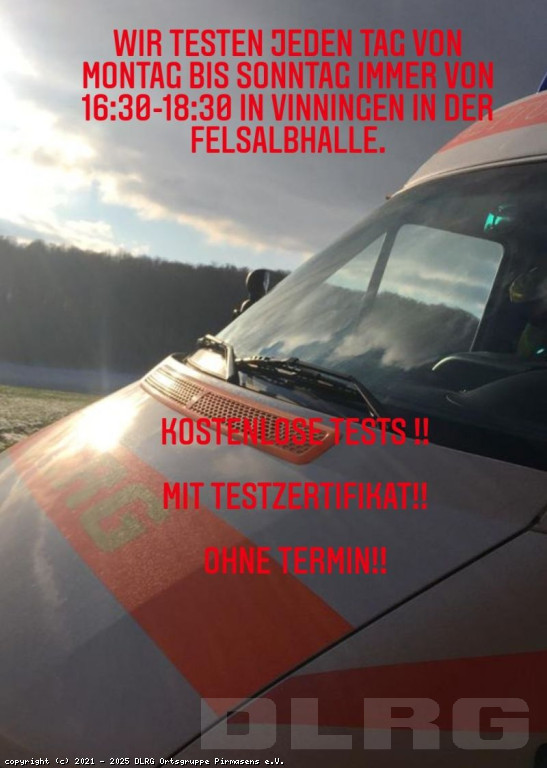 Wir freuen uns mitteilen zu können, das die DLRG OG Pirmasens eine eigene mobile Covid-19 Schnelltest Station betreibt. Die Dienste der Teststation stehen jedermann zur Verfügung. Termine gibt es auf telefonischer Anfrage. Mobil: +49 160 93139325 Information: Die mobile Teststation ist nur bis zum 31.07.2021 in Betrieb. ... Mehr erfahren