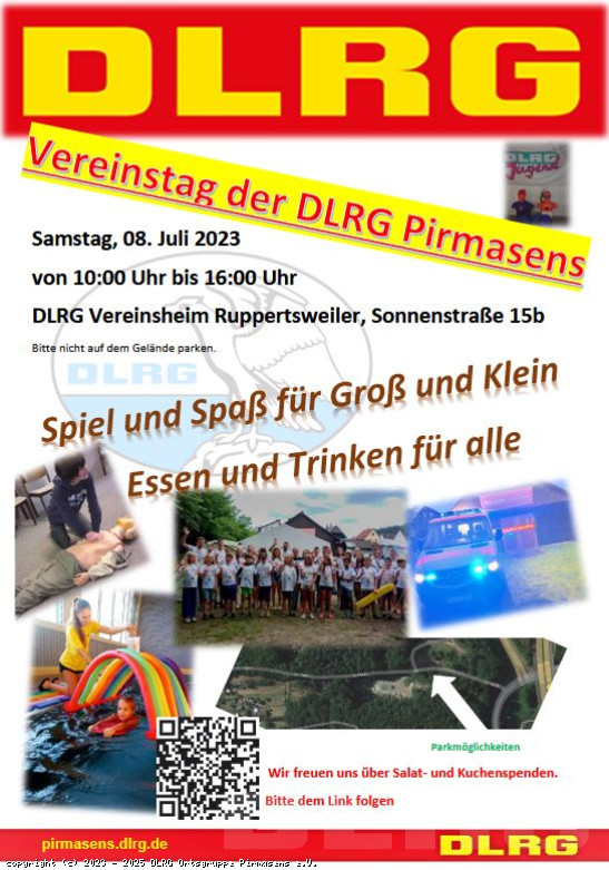 Liebe DLRG’ler, liebe Eltern, am Samstag den 08. Juli 2023 von 10.00-16.00 Uhr feiert die DLRG Pirmasens Ihren Vereinstag in unserem Vereinsheim in Ruppertsweiler. Geboten wird Spiel und Spaß für Groß und Klein. Für das leibliche Wohl ist bestens gesorgt. Mit freundlichen Grüßen Die Vorstandschaft und alle Helfer und Helferinnen ... Mehr erfahren