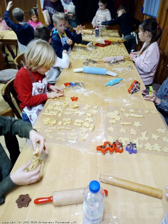 In der Weihnachtsbäckerei in unserem Vereinsheim warteten etwa 40 Bleche voll Plätzchen darauf endlich in den Ofen zu dürfen. Zuvor hatten 28 Kinder fleißig Teig ausgerollt und ausgestochen. Mollig warm war es in unserem Vereinsheim in Ruppertsweiler, als die Kinder eingetroffen waren. Nachdem die Hände gewaschen und die Arbeitsflächen gemehlt waren, konnte es auch schon losgehen. Beim Ausrollen mussten die kleinen Bäcker auf die richtige Teigdicke achten. Ein Kind hatte ein Nudelholz, welches mithilfe eines Rings als Abstandhalter die richtige Dicke rollt – sehr praktisch! Nun begann das Ausstechen. Schnell wurde klar, dass der Ofen mit der Menge Plätzchen kaum mithalten kann. Stau in der Plätzchenbäckerei! Nach einer kurzen Bewegungspause waren nicht nur die Plätzchen gebacken, s ... Mehr erfahren