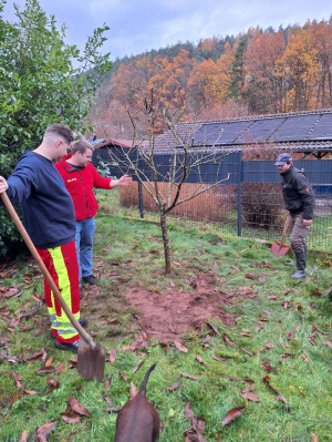 Am 15. November stellten sich gleich mehrere Mitglieder unseres Teams der umweltfreundlichen Aufgabe: Der stellvertretende Leiter Einsatz Johannes Brinschwitz, Materialwart Steffen Rinck, Leiterin Ausbildung Lena Kelsch, Leiter Einsatz Nicolas Schwarz sowie unsere Sanitäterin Catrin Schwarz trafen sich, um gemeinsam einen neuen Baum zu pflanzen.