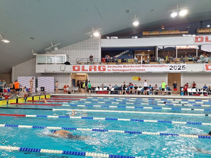 Damit war das Abenteuer Deutsche Meisterschaften für uns noch lange nicht zu Ende: Am Samstag, den 25.10.2025 haben wir uns die Mannschaftswettkämpfe der Altersklassen 17/18 und offen als Zuschauer angeschaut. Wir waren live dabei, als in der AK 17/18 männlich ein neuer Deutscher Rekord in der Rettungsstaffel erreicht wurde!