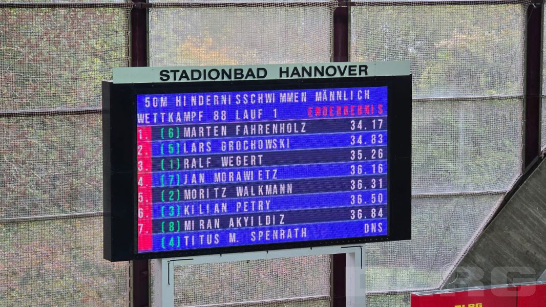 Am Freitag den 24.10.2025 ging es gegen 13.00Uhr ins Bad, ab 14.00 Uhr begannen die Wettkämpfe in der Altersklasse 11/12. In den Disziplinen 50m Hindernisschwimmen, 50m Kombiniertes Schwimmen und 50m Flossenschwimmen gab Jan alles, erreichte beim Hindernisschwimmen (0:36,16) und Flossenschwimmen (0:28,27) neue persönliche Bestleistungen. Während wir im Schwimmbad die Unterstützung von Jans Papa Martin hatten, haben Trainer, Vorstandsmitglieder und Familie zuhause beim Livestream mitgefiebert. Am Ende des Wettkampfes dufte Jan sich über Platz 15 freuen! Insgesamt gingen in der AK 11/12 31 Teilnehmer an den Start.